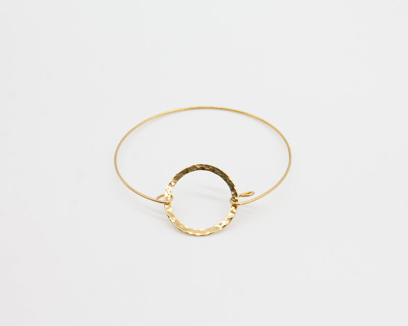The Unity Bracelet an elegant daily reminder of the power of hope and community you can wear with you always. This best selling style is handmade with a hammered metal finish. Perfectly paired with the Unity Necklace. From our Freedom Business partner, Purpose Jewelry, based in California. Dimensions: 7.5 inches. Material: 14k Gold plated.