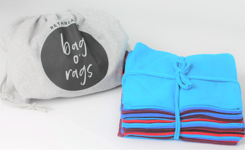 Save fifty* rolls of paper towels a year! Includes twenty upcycled t-shirt towels. Small changes can make BIG impacts. Every time you purchase our Bag o Rags you are helping to restore choice and provide impactful work for survivors of human trafficking in Jacksonville, FL. Made with upcycled t-shirts. Good for the environment, zero waste. Locally handmade in Jacksonville, Florida, USA. Bags are available in heather gray and t-shirt towel colors vary. Towel dimensions: 16 in x 15 in. *Based on average customer consumption.