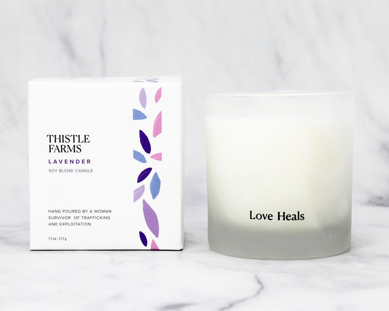 With a soft, herbaceous, and floral aroma, lavender is best known for its ability to refresh and reduce stress. Inhale the pure scent of Bulgarian lavender and breathe out negative energy and stress. From our freedom business partner, Thistle Farms, located in Nashville, Tennessee. Made with soy wax, cotton flat wick, and lavender oil. Handmade in Nashville, Tennessee, USA. Dimensions: 7.5 oz tumbler with 35-hour burn time.