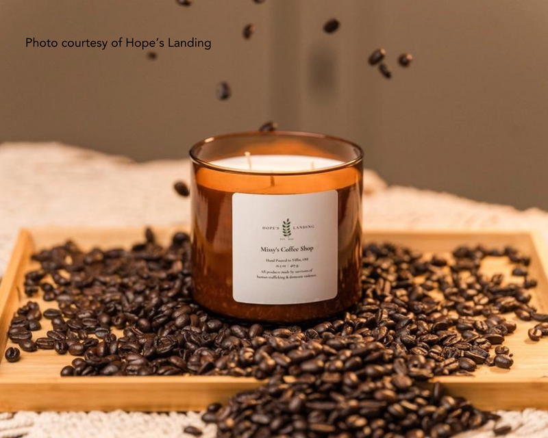 This candle makes you feel like you're in your favorite coffee shop. This coffee bean scent will make you feel like you're sipping on your favorite latte or cappuccino! Made with 100% soy wax. Burn time 80+ hours. From our Freedom Business partner, Hope’s Landing, based in Tiffin, Ohio. Materials: 100% soy wax. Dimensions: 16 oz, with 80+ burn time.