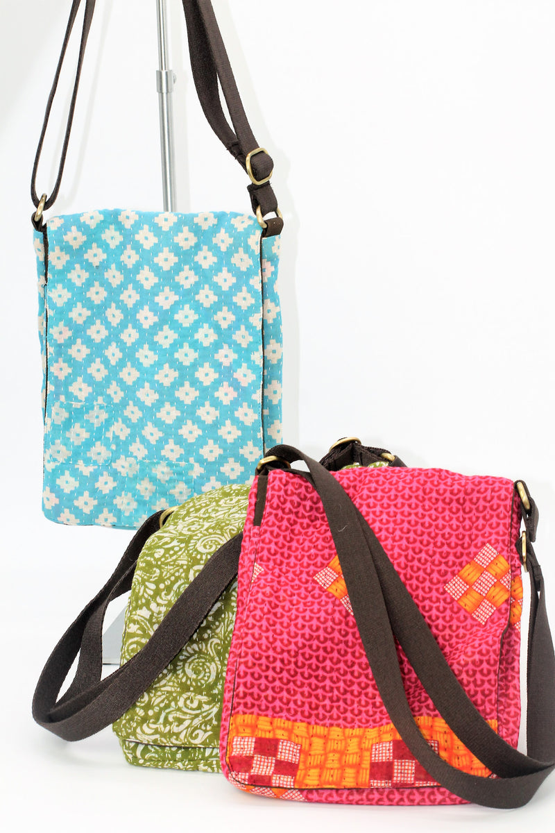 Style and functionality made into the perfect mini crossbody for every day. The Mini Meye Messenger has room for your tablet, keys, phone, and more. Includes a gusseted front pocket to keep you organized and an interior zipper pocket to keep your items secure. The Meye Mini is a go-to for traveling light without sacrificing comfort, convenience, or style. From our freedom business partner, Sari Bari located in Kolkata, India. Handmade with 100% cotton sari and canvas-lined interior for structure and durability. Dimensions 10 in x 8inx 1.5 in. Features an adjustable crossbody strap two interior gusset pockets to keep you organized, zipper closure, and signed by the artisan. Note: your order will come in a variety of colors and patterns. If you have a preference, you can reach out to us at info@rethreaded.com use the chat function, or leave us a note on your order.