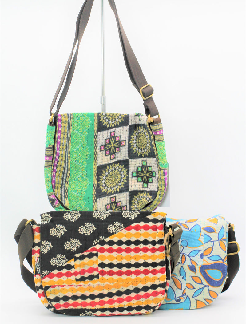 With seemingly endless features and more than enough style, the Shopna Mini Messenger is one of Sari Bari's favorite bags to date. This bag features two front pockets under the front flap, an interior zipper pocket for added security, and a special place just for your tablet or IPAD Air. Featuring chocolate canvas and brass colored fittings give this bag extra style. From our freedom business partner, Sari Bari located in Kolkata, India. Handmade with 100% cotton sari and canvas-lined interior for structure and durability. Dimensions: 12 in x 10 in. Note: your order will come in a variety of colors and patterns. If you have a preference, you can reach out to us at info@rethreaded.com or use the chat.