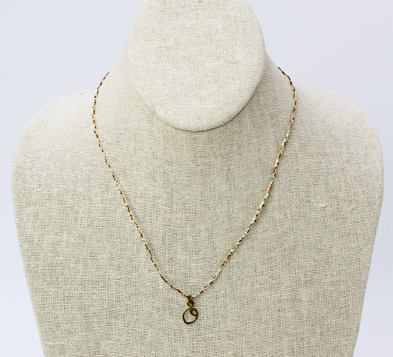 Accessorize with the unique and simplistic Swirl Pendant Necklace. Featuring a chain of braided sari silk thread and finished off with a delicate handshaped brass swirl pendant. Handmade in Bangladesh. From our freedom business partner, Basha, based in Bangladesh. Materials: brass, sari silk thread. Size: approx. 9 in length.