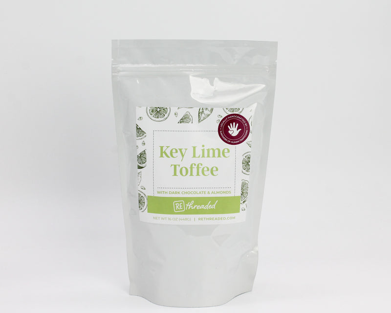 Enjoy paradise in a bite. After all, no Florida vacation is complete without key lime treats. We took our famous toffee and infused it with delicious key lime, coated it in decadent, dark chocolate, topped it with roasted almonds, and finished it with a touch of sea salt. Every time you purchase our toffee you are helping to restore choice and provide impactful work for survivors of human trafficking in Jacksonville, FL. Locally handmade in Jacksonville, Florida, USA. Size: 1 lb. Ingredients: Dark Chocolate Coating Wafers, Butter, Sugar, Almonds, Key Lime Pie Liqueur, Key Lime Extract. Contains: Milk, Almonds.