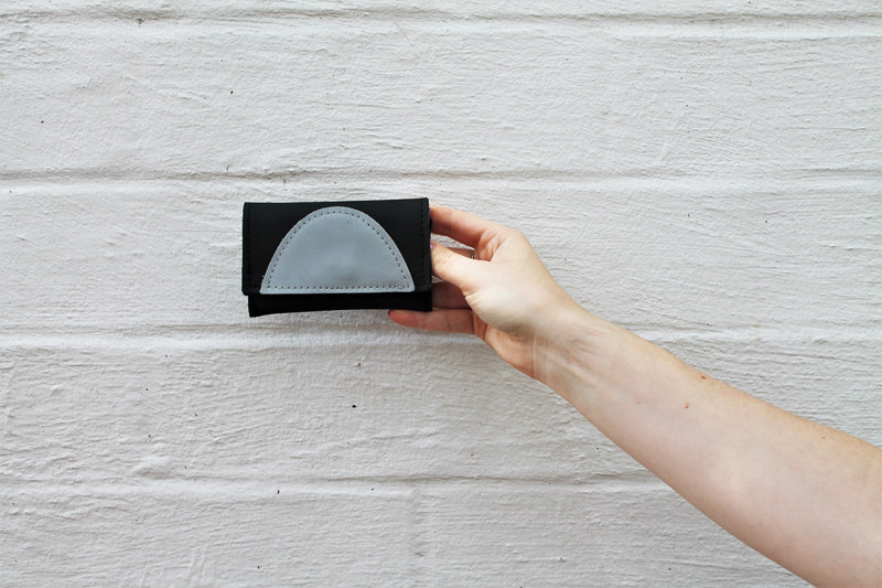 With a pop of color and thoughtful design Rethreaded�s Applique Wallet is your new favorite on the go accessory. The Applique Wallet is the perfect card wallet, with two interior card or cash pockets and magnetic snap closure for security. This wallet includes color blocking features for a unique and timeless look. Every time you purchase the Applique Wallet you are helping to restore choice and provide impactful work for survivors of human trafficking in Jacksonville, FL. Made with upcycled leather. Good for the environment. Locally handmade in Jacksonville, Florida, USA. Dimensions: 4.5 in x 3 in.