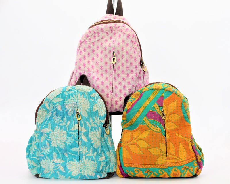 The Meghna Mini Pack lends a full helping a fun in the smallest backpack yet! Featuring a zipper closure in the main compartment with an additional front-facing zipper pocket, you can go hands & worry-free no matter where your travels take you. From our freedom business partner, Sari Bari located in Kolkata, India. Handmade with 100% cotton sari. Dimensions: 10.5 in x 12 in. Note: your order will come in a variety of colors and patterns. If you have a preference you can reach out to us at info@rethreaded.com or use the chat.