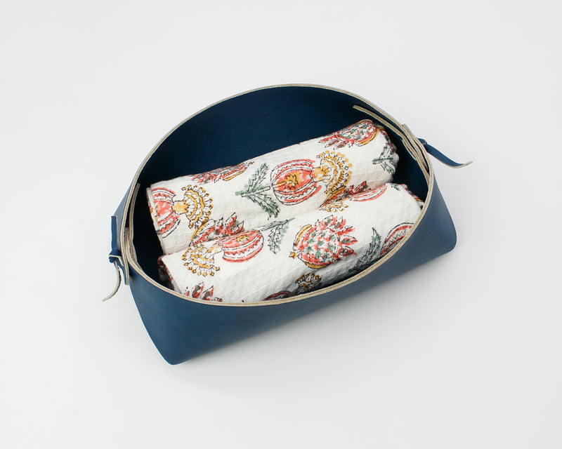 Toss your keys and wallet in a place that’s stylish and convenient each time you use the Small Valet Tray from Rethreaded. This tray will look beautiful on your countertop, your entryway table, or your coffee table. Its design turns the items you haphazardly toss onto the counter into an organized collection stored in a statement piece. Every time you purchase our Large Valet Tray you are helping to provide meaningful employment and supportive services for a survivor of human trafficking at Rethreaded. Made with upcycled leather. Locally handmade in Jacksonville, Florida, USA. Dimensions: measures approx. 6" x 9 ½" x 3"