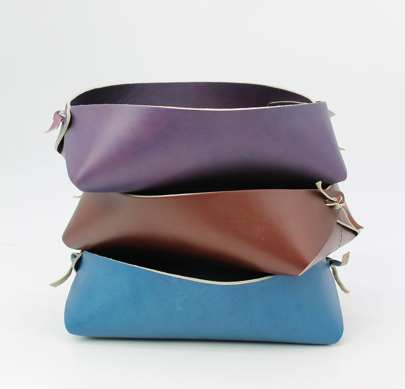 Toss your keys and wallet in a place that’s stylish and convenient each time you use the Small Valet Tray from Rethreaded. This tray will look beautiful on your countertop, your entryway table, or your coffee table. Its design turns the items you haphazardly toss onto the counter into an organized collection stored in a statement piece. Every time you purchase our Large Valet Tray you are helping to provide meaningful employment and supportive services for a survivor of human trafficking at Rethreaded. Tray is not food safe. Made with upcycled leather. Locally handmade in Jacksonville, Florida, USA. Dimensions: measures approx. 6" x 9 ½" x 3" Please note, product is not food safe.