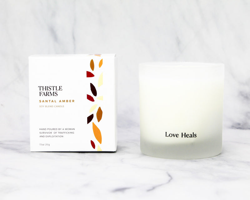 A woodsy aroma of cedarwood and cardamom, a dash of sweet rose, and an earthy scent of Patchouli. From our freedom business partner, Thistle Farms, located in Nashville, Tennessee. Made with soy wax and cotton flat wick. Handmade in Nashville, Tennessee, USA. Dimensions: 7.5 oz tumbler with 35-hour burn time.