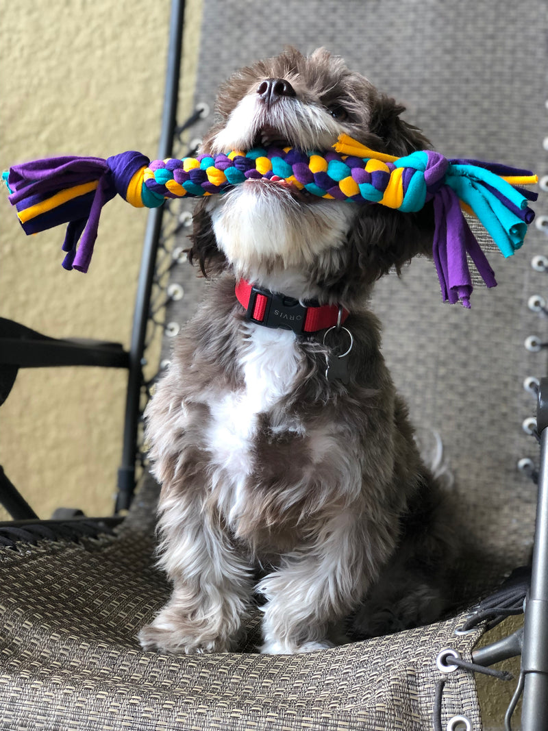 Your dog's new best friend, besides you of course! The Tee-Bone Dog Toy comes in four different sizes, is sturdily made, and has many different color combos. Every time you purchase our Tee Bone toy you are helping to restore choice and provide impactful work for survivors of human trafficking in Jacksonville, FL. Made with upcycled t-shirts. Good for the environment. Locally handmade in Jacksonville, Florida, USA. Machine Washable & Dryer Safe. Dimensions: 13 in length